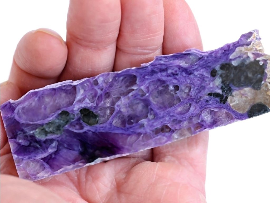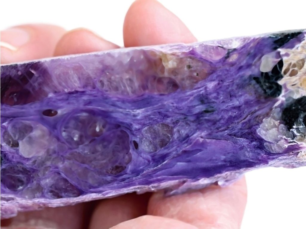Čaroit 10,8 cm - top kvalitní syté zabarvení a vysoký lesk (oboustranně broušeno v ČR) Jakostní přírodní čaroit. Rusko. 60 g