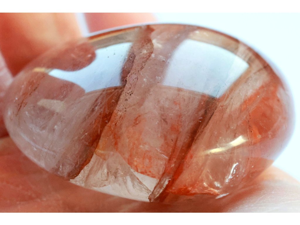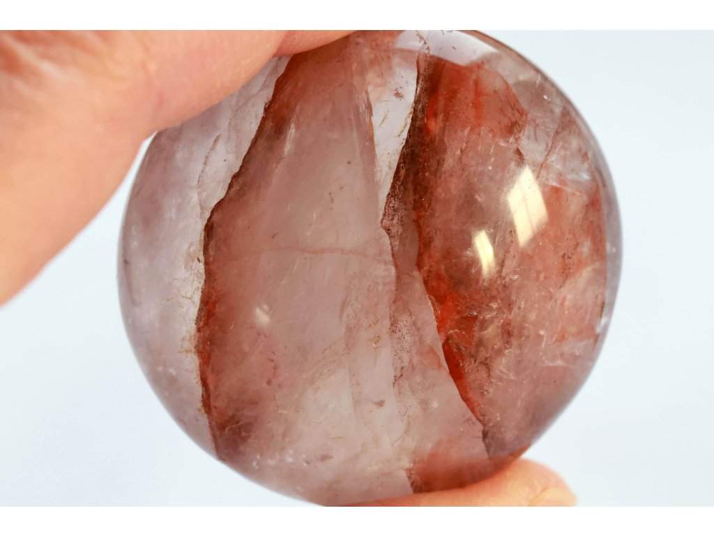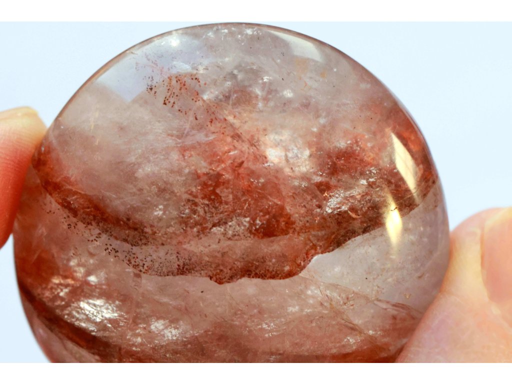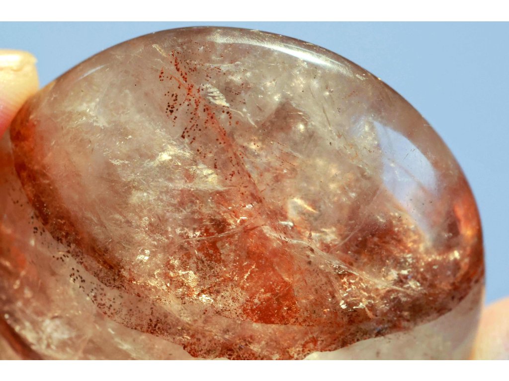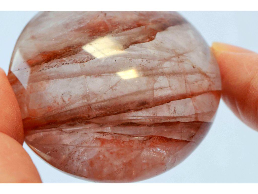 Křišťál s hematitem 114 g - broušený, skvěle padne do ruky Kvalitní hematit v křišťálu. Madagaskar. 5,4 x 5,3 x 3,1 cm