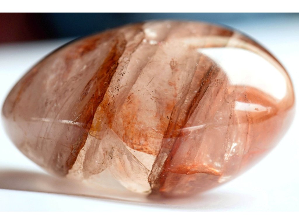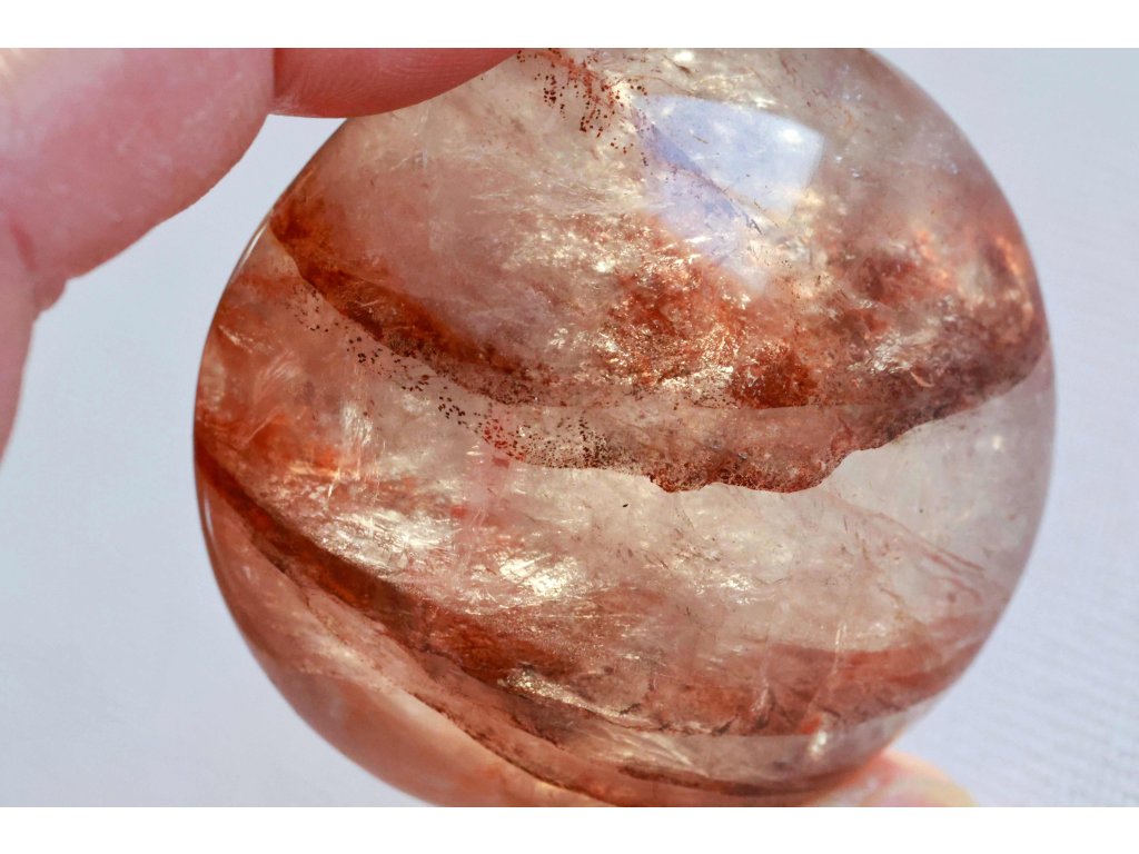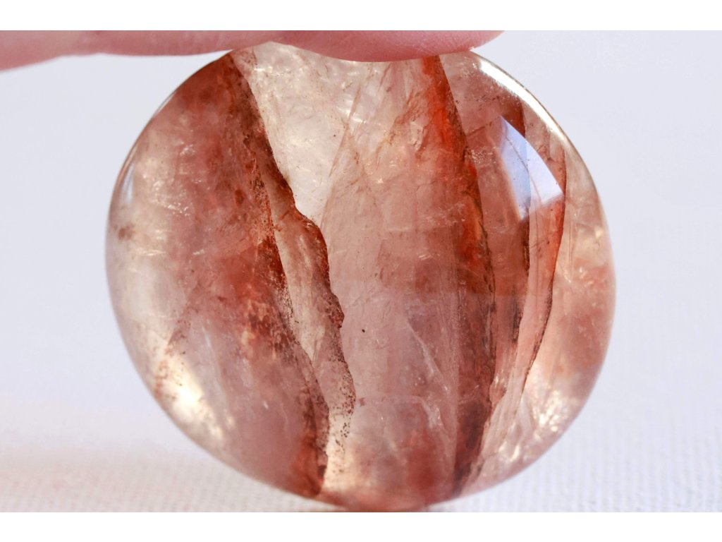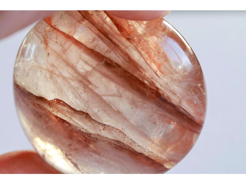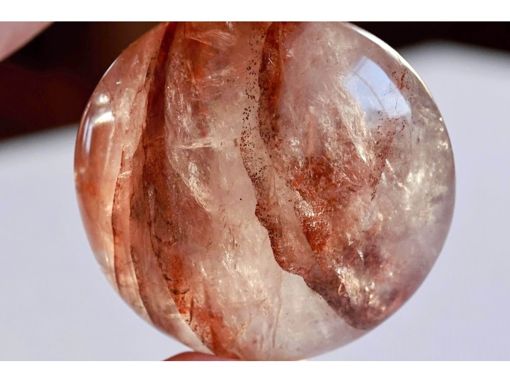 Křišťál s hematitem 114 g - broušený, skvěle padne do ruky Kvalitní hematit v křišťálu. Madagaskar. 5,4 x 5,3 x 3,1 cm