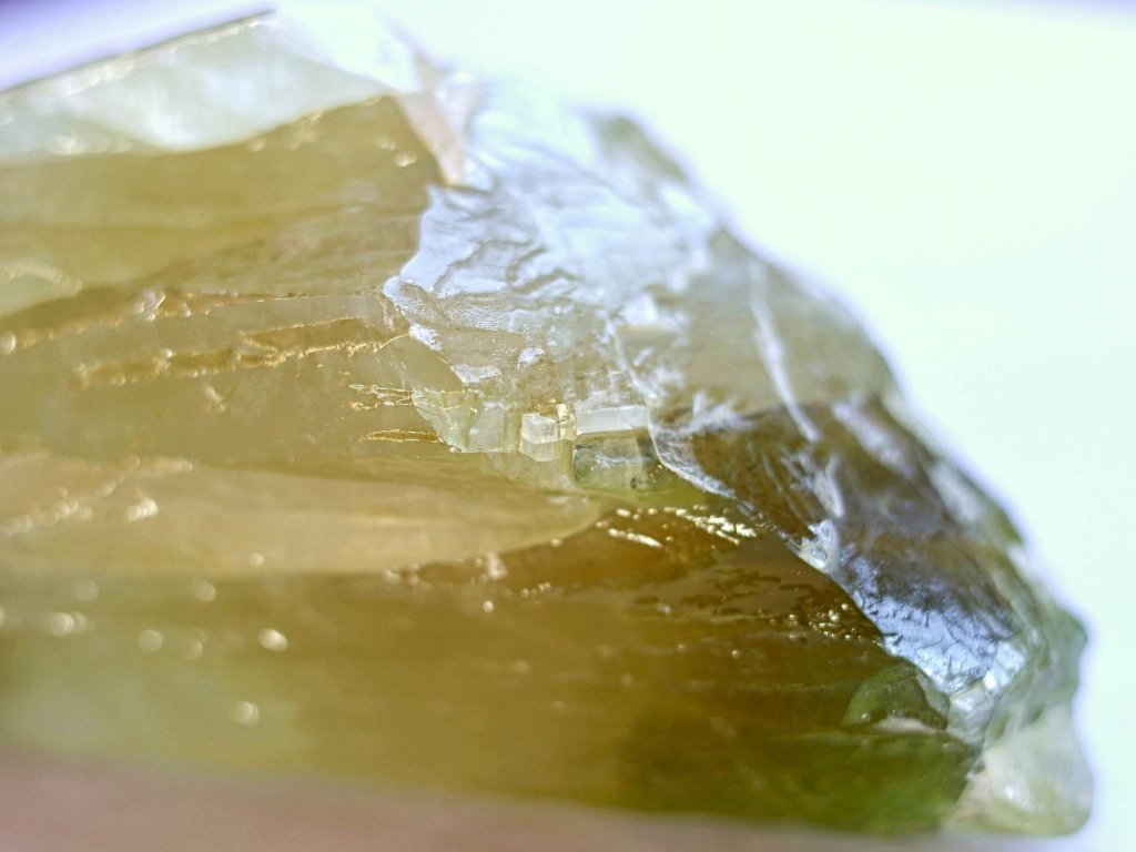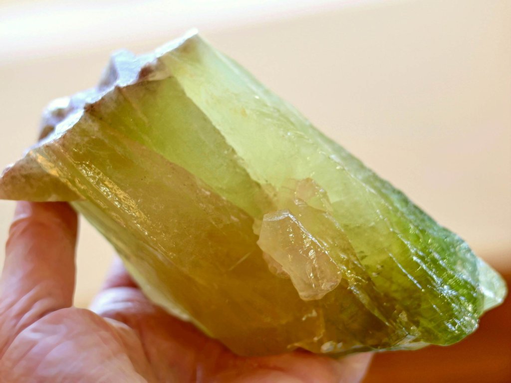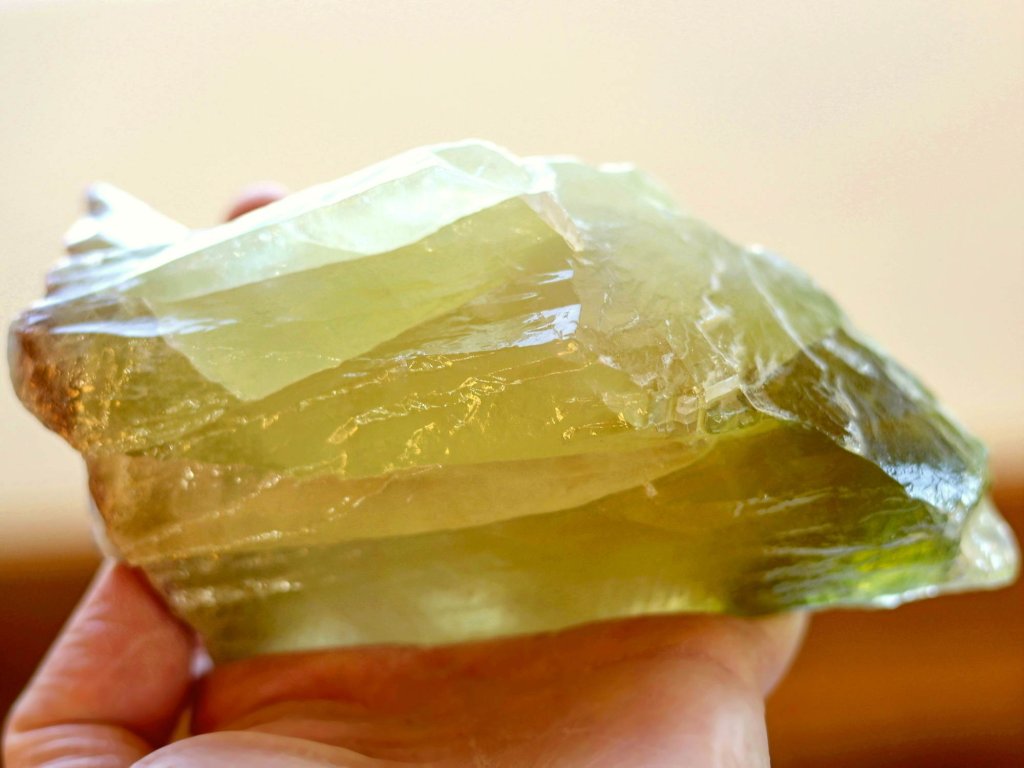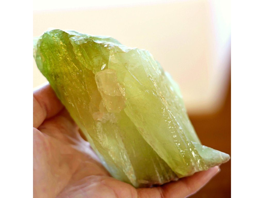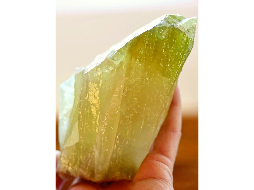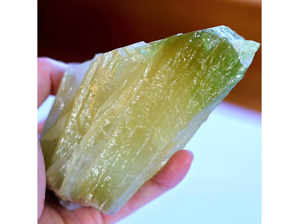 Kalcit zelený 845 g - průsvitné srostlé krystaly v pestrých odstínech Kvalitní přírodní krystalový kalcit. 15,7 x 8,1 x 7 cm. Mexiko