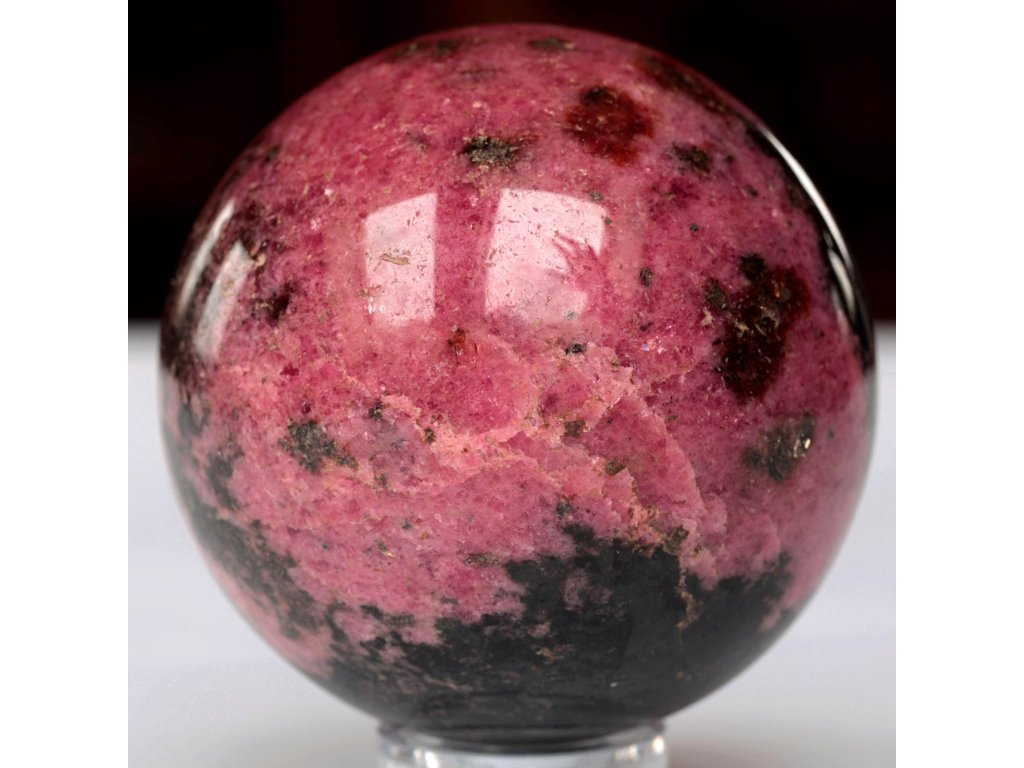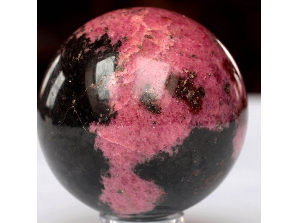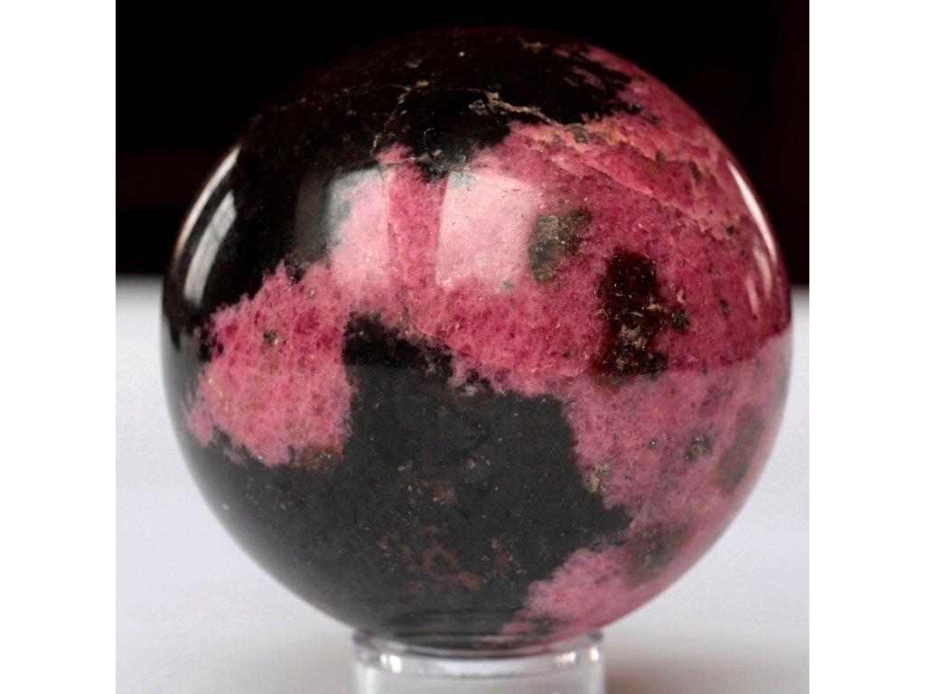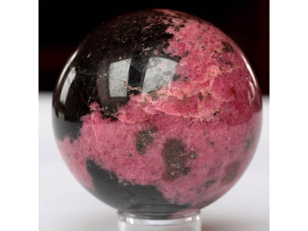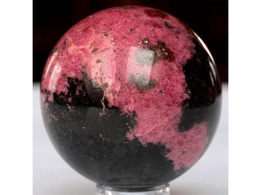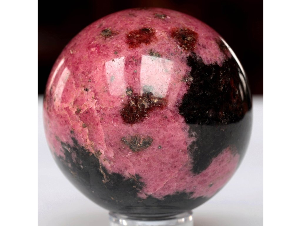 Rodonit - koule 670 g, top tmavé zabarvení, jemně leštěná Extra kvalitní, dekorační kamenná koule. Madagaskar. Ø 71 mm