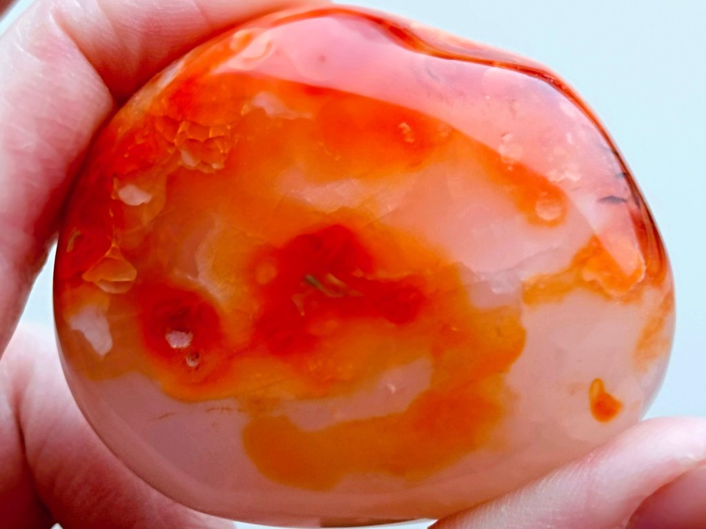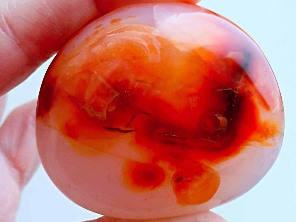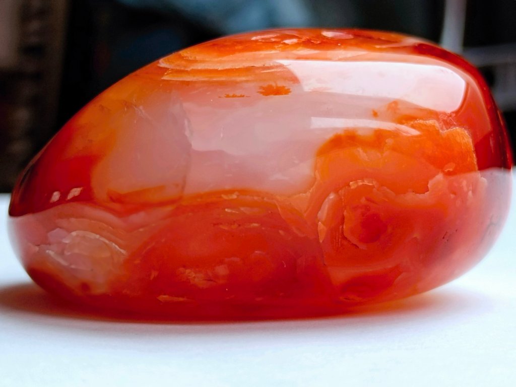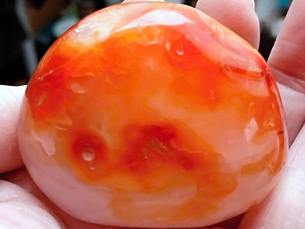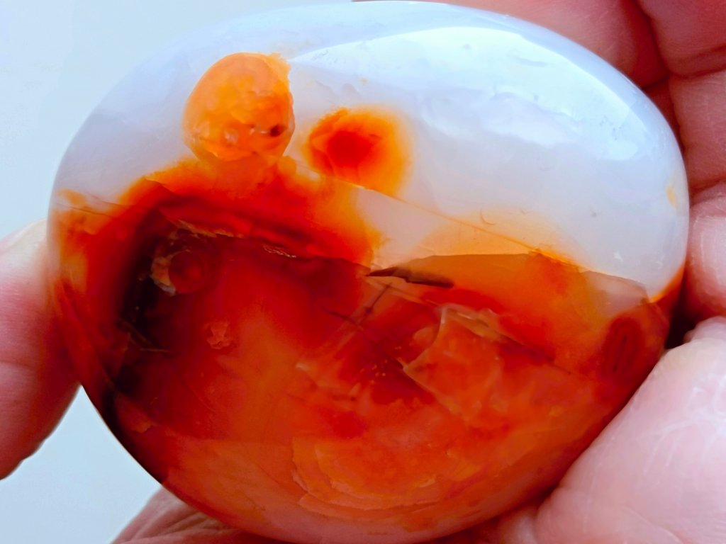 Karneol 177 g - skvěle padne do ruky, broušený, průsvitný Kvalitní "Kámen životní energie". Madagaskar. 6,5 x 5,5 x 3,4 cm