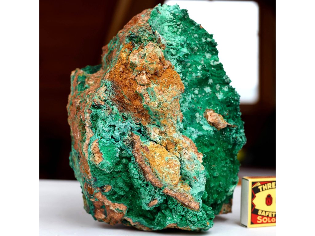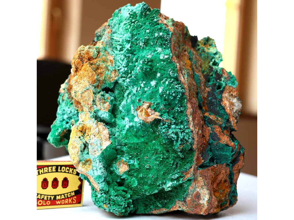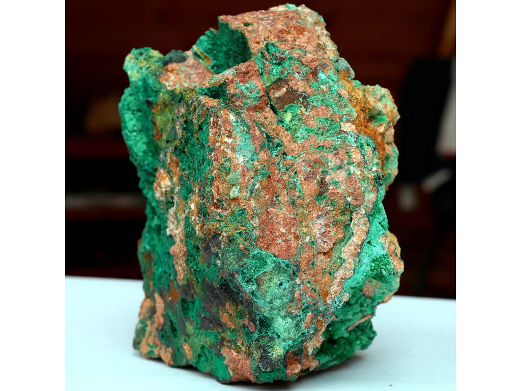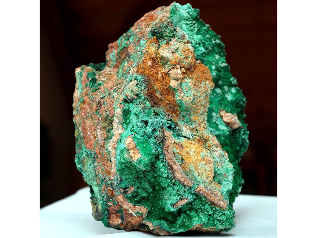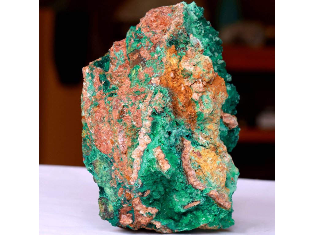 Malachit 3,74 kg - obří, ve vzácném neonovém zabarvením z pohoří Atlas Sbírkový, raritní, přírodní, dekorační kámen. Maroko. 17 x 15 x 10,5 cm