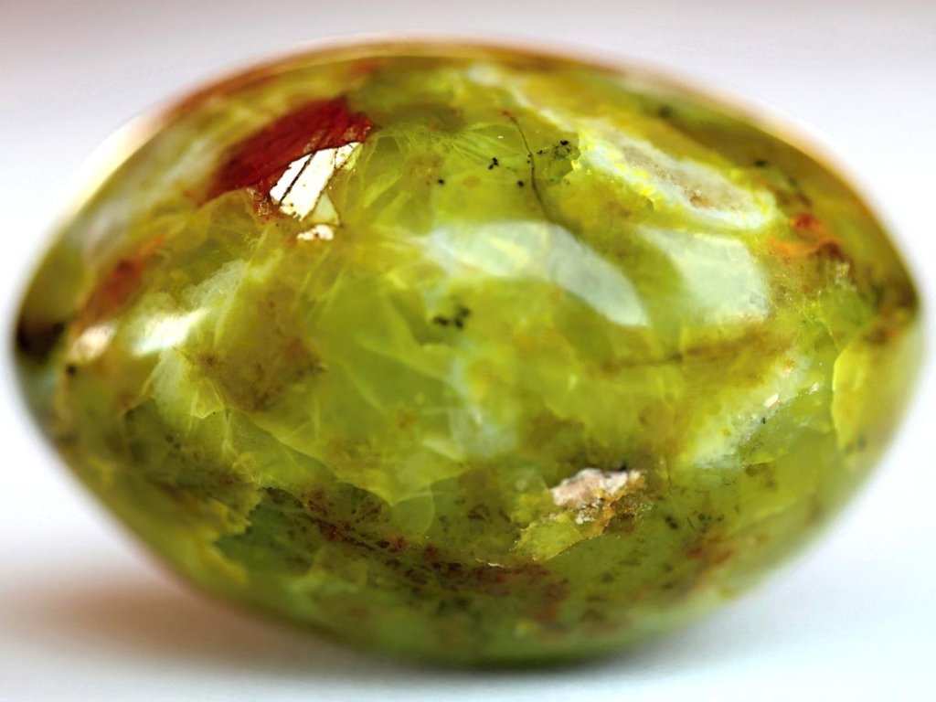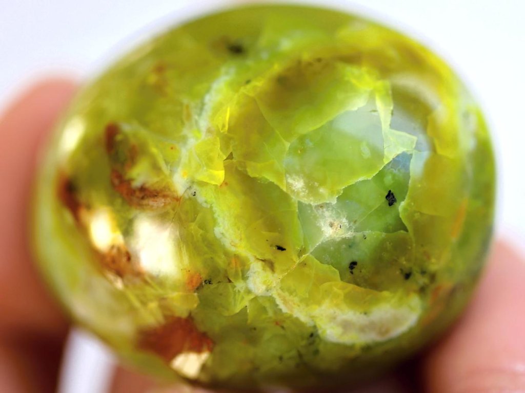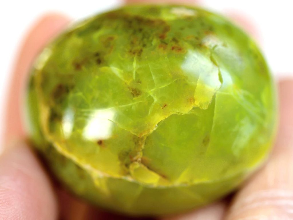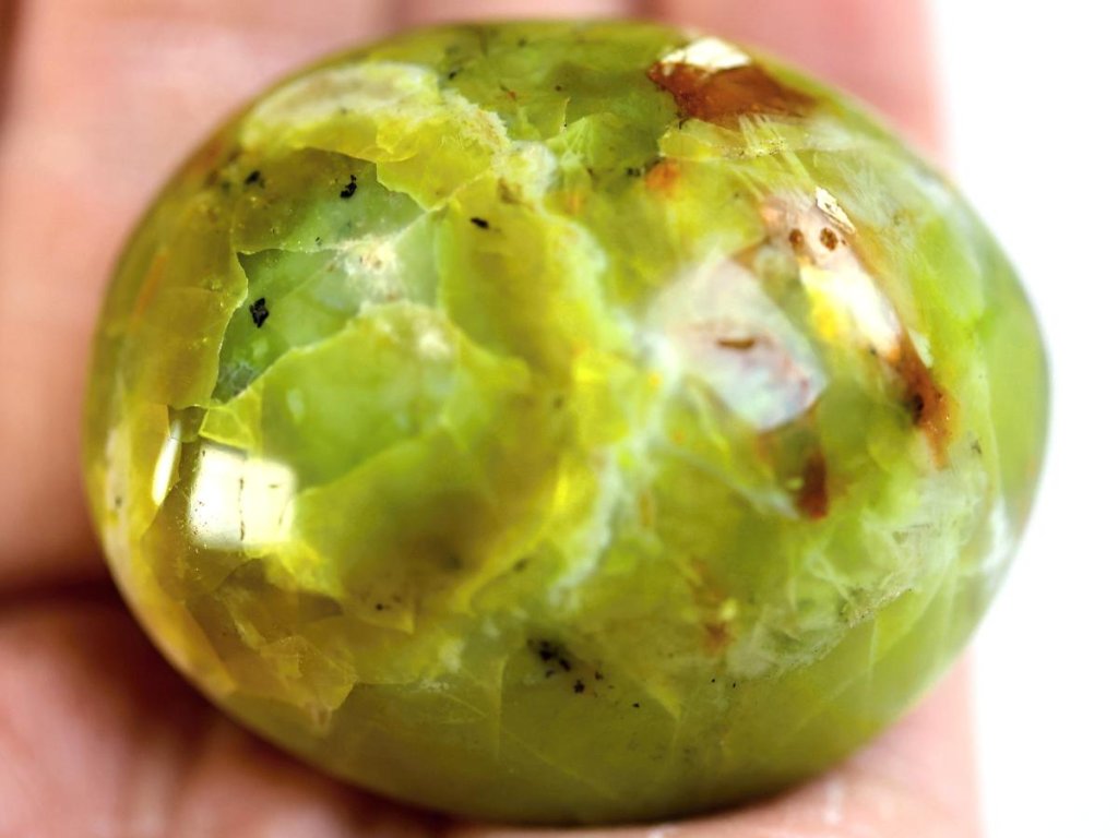Chryzopál (neonový zelený opál) 75 g | Broušený, do dlaně Přírodní výběrový opál. Madagaskar. 5 x 4,1 x 3,3 cm
