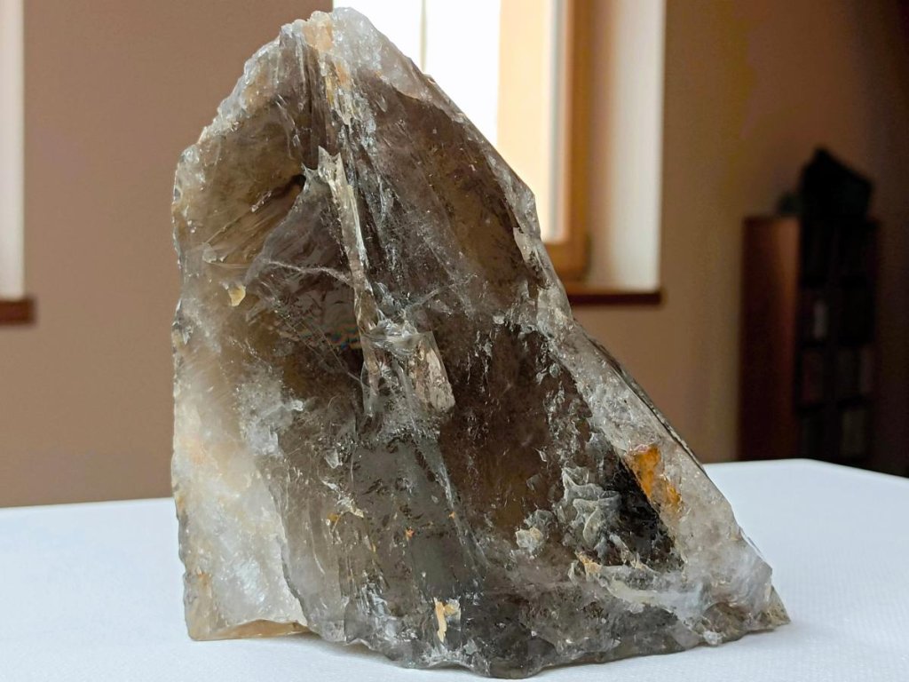 Pravá (nepřepalovaná) záhněda v podobě velké přírodní drúzy s proměnlivým zabarvením kouřových až zlatavých krystalů odvislým od intenzity, druhu a lomu světla. Uplatnitelná nejen jako enormně silný ochranný kámen ve Feng Šuej, ale díky své velikosti a estetickému dojmu taktéž jako nepřehlédnutelný dekorativní kámen v interiéru.