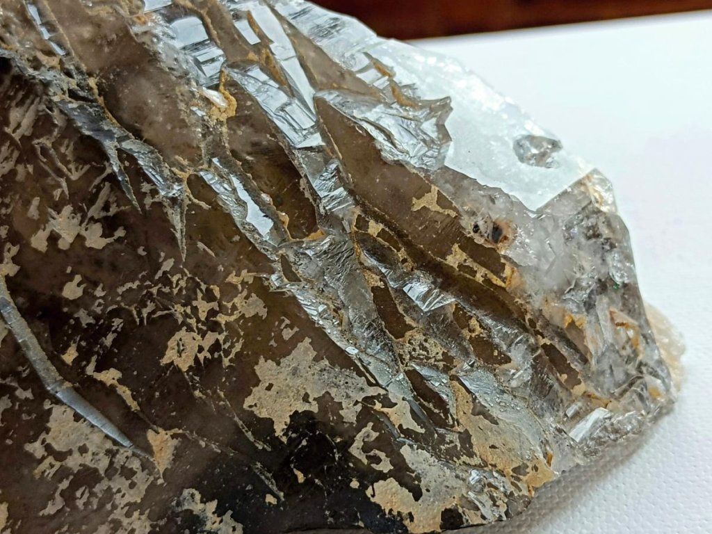 Krásně lesklá česká záhněda s dlouhou špicí a množstvím dalších nepoškozených krystalů. Záhněda sedí skvěle na ploše bez potřeby stojánku, kdy vyniká tvar špice i skeletový, elestiální růst nespočtu dalších krystalů ("Dar andělů"). Spodní a boční stěny i hrany disponují kompletně "dohojenými" krystaly ("Samoléčitel"). Plosky stěn mají plně zachované rýhování ("Záznamy") a místy i vyryté "Kódy". Jedná se nejen o "vydařenou" velkou sbírkovou záhnědu (nález 2013), ale i vydatného pomocníka v pokročilejší práci s krystaly a léčitelství.