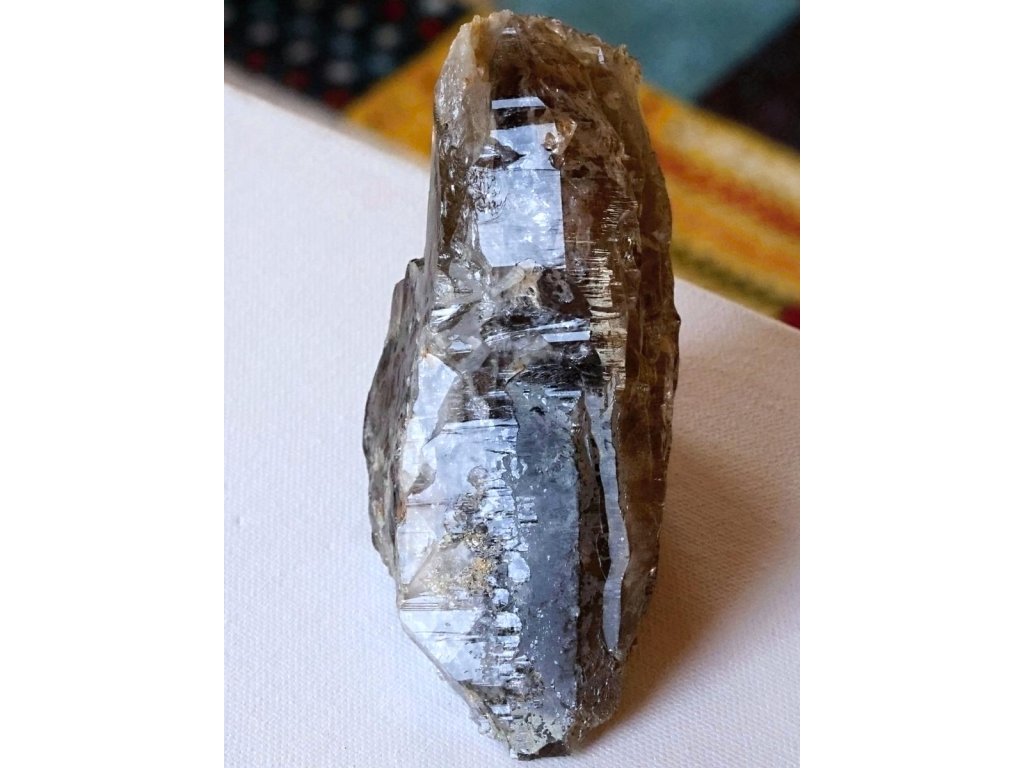 Oboustranně ukončená česká záhněda "Samoléčitel" s kompletně novými zhojenými krystaly v širší části, směrem ke špici v postupném elestiálním růstu ("Dar andělů"), dále s hlubokými "Záznamy a Kódy" a "diamant" křišťály vrostlými přímo do záhnědy + přirostlý shluk dalších křišťálů. Jedná se nejen o "vydařenou" sbírkovou záhnědu, ale i vydatného pomocníka v pokročilejší práci s krystaly a léčitelství.